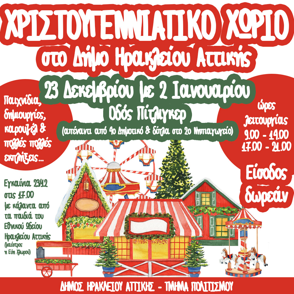 Χριστουγεννιάτικο Χωριό για όλα τα παιδιά με ελεύθερη είσοδο στο Δήμο Ηρακλείου Αττικής