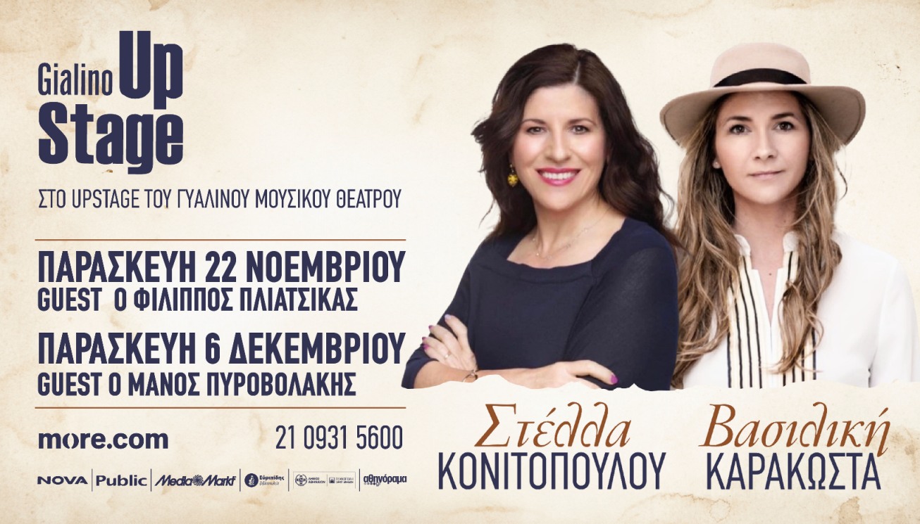 Στέλλα Κονιτοπούλου - Βασιλική Καρακώστα στο Γυάλινο Up Stage. Guests: 22/11 Φίλιππος Πλιάτσικας, 6/12 Μάνος Πυροβολάκης