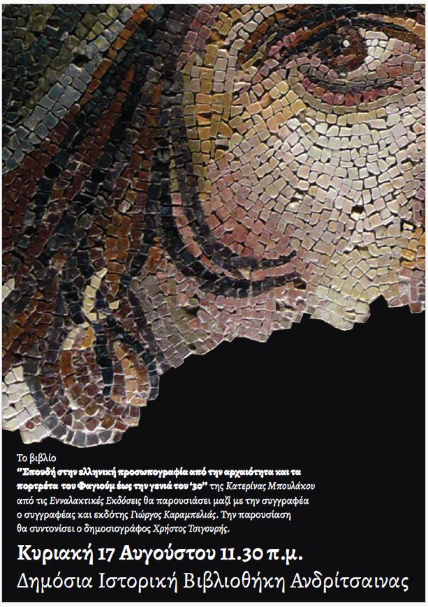 Παρουσίαση Βιβλίου: Σπουδή στην ελληνική προσωπογραφία από την αρχαιότητα και τα πορτρέτα του Φαγιούμ έως τη γενιά το ΄30, στη Δημόσια Ιστορική Βιβλιοθήκη Ανδρίτσαινας