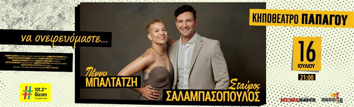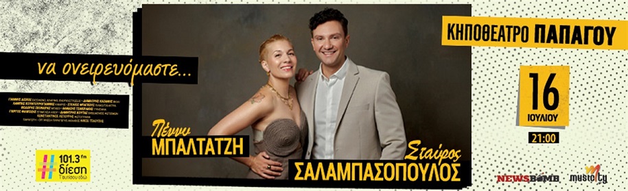 Πέννυ Μπαλτατζή - Σταύρος Σαλαμπασόπουλος live την Τρίτη 16 Ιουλίου στο Κηποθέατρο Παπάγου
