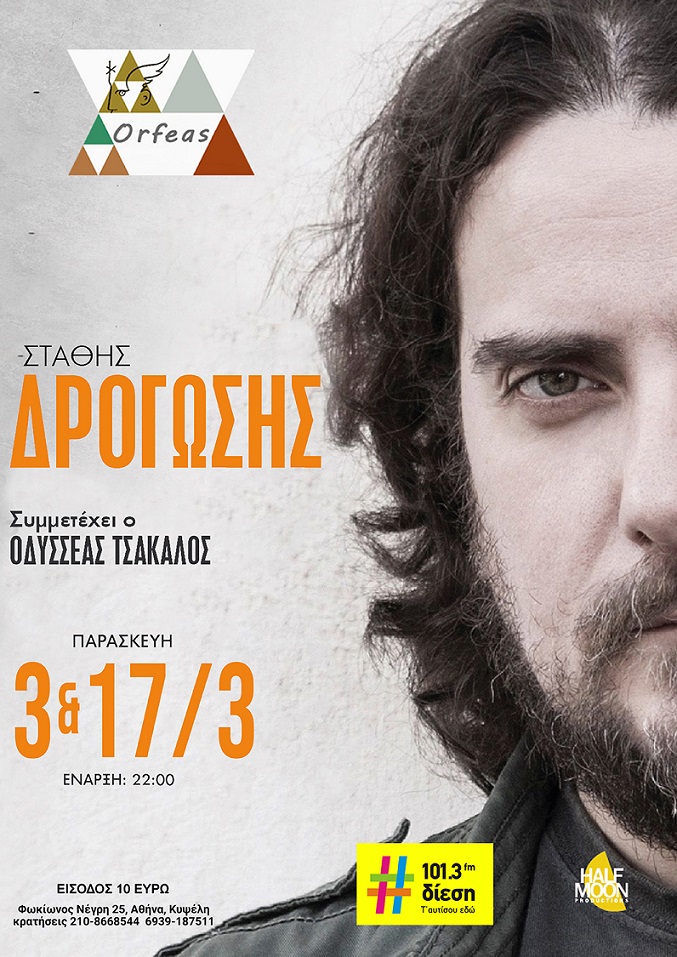 Ο Στάθης Δρογώσης στον «Ορφέα», στην Κυψέλη - Παρασκευή 17 και 31 Μαρτίου