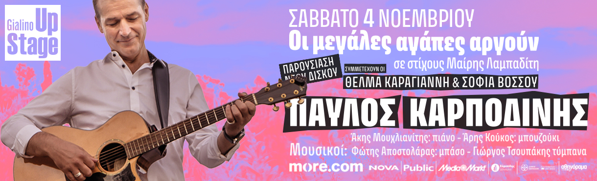 Ο Παύλος Καρποδίνης στο Γυάλινο Up Stage, το Σάββατο 4 Νοεμβρίου
