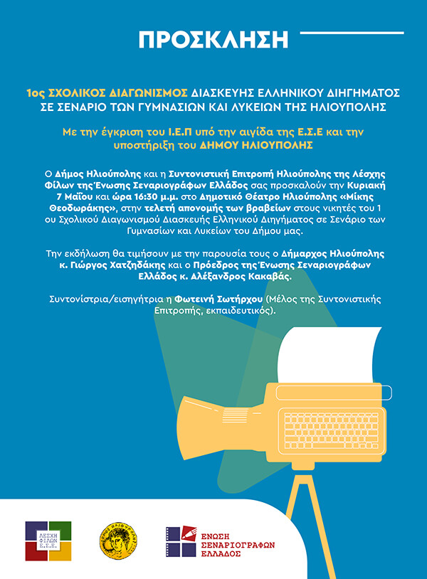 ΤΕΛΕΤΗ ΛΗΞΗΣ 1ου Σχολικού Διαγωνισμού Διασκευής Ελληνικού Διηγήματος σε Σενάριο των Γυμνασίων και Λυκείων της Ηλιούπολης