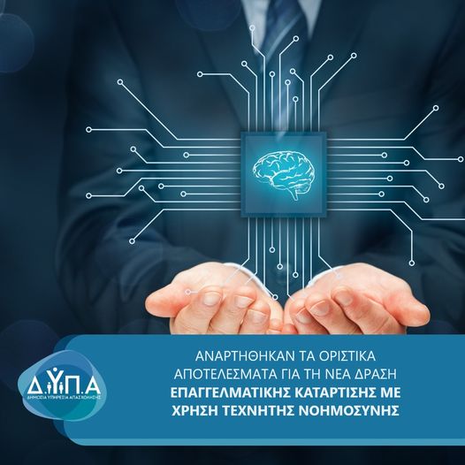 Αναρτήθηκαν τα οριστικά αποτελέσματα για τη νέα δράση επαγγελματικής κατάρτισης με χρήση τεχνητής νοημοσύνης της ΔΥΠΑ