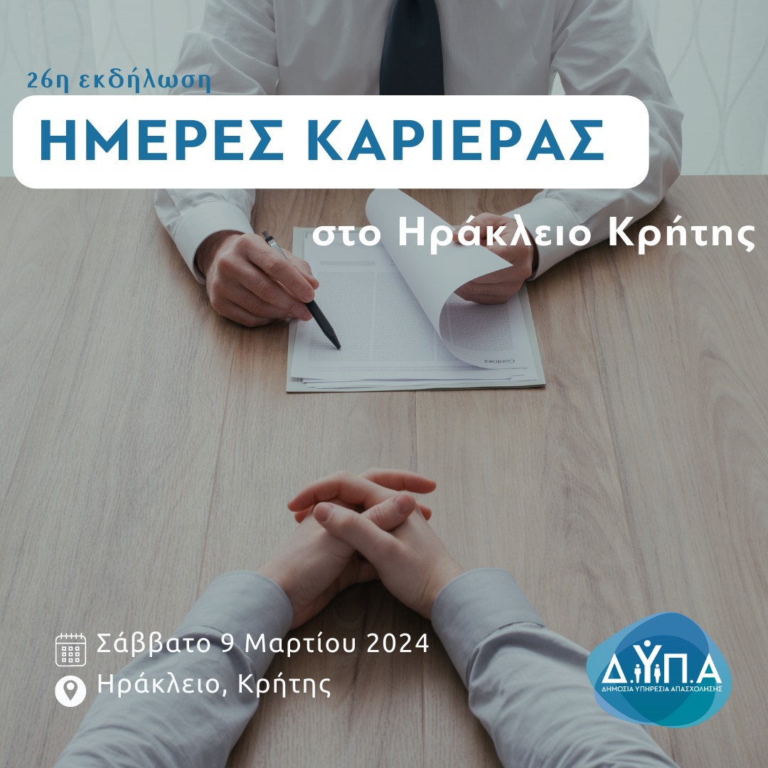 Στο Ηράκλειο η 26η «Ημέρα Καριέρας» της ΔΥΠΑ το Σάββατο 9 Μαρτίου 2024