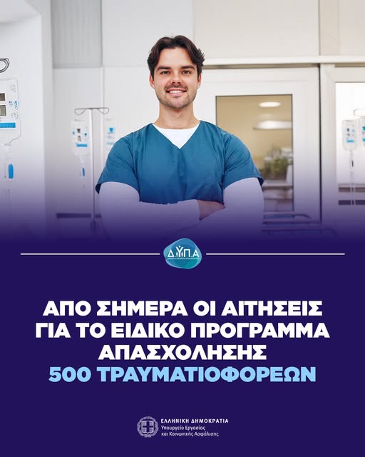 Από σήμερα οι αιτήσεις για το ειδικό πρόγραμμα απασχόλησης 500 τραυματιοφορέων