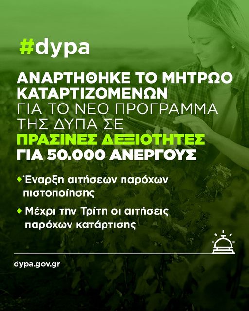 Έναρξη υποβολής αιτήσεων Παρόχων Πιστοποίησης Προσώπων στο νέο πρόγραμμα της ΔΥΠΑ για 50.000 ανέργους