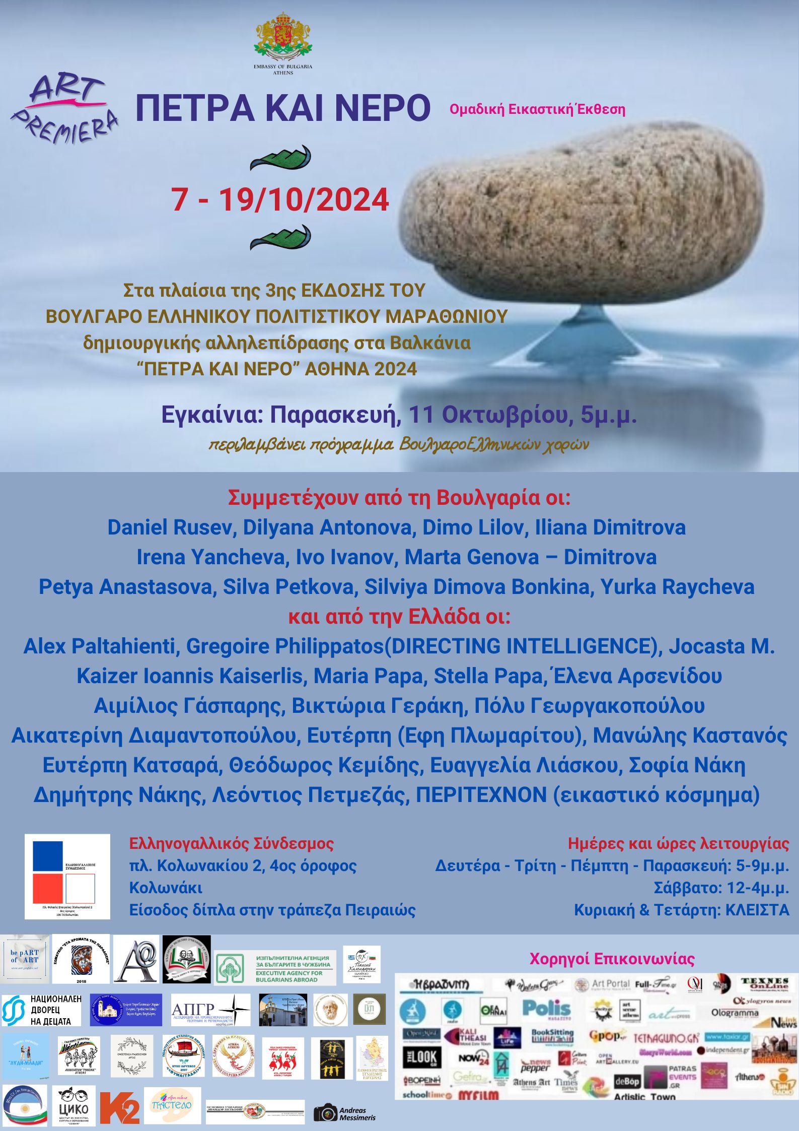 Πέτρα & Νερό: Ομαδική Εικαστική Έκθεση στο πλαίσιο του 3ου Βουλγαροελληνικού Πολιτιστικού Μαραθωνίου «ΠΕΤΡΑ ΚΑΙ ΝΕΡΟ» ΑΘΗΝΑ 2024