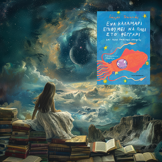 «Ένα καλαμάρι επιθυμεί να πάει στο φεγγάρι...» του Γιώργου Τσακνιά στην προθήκη της αυλής μας