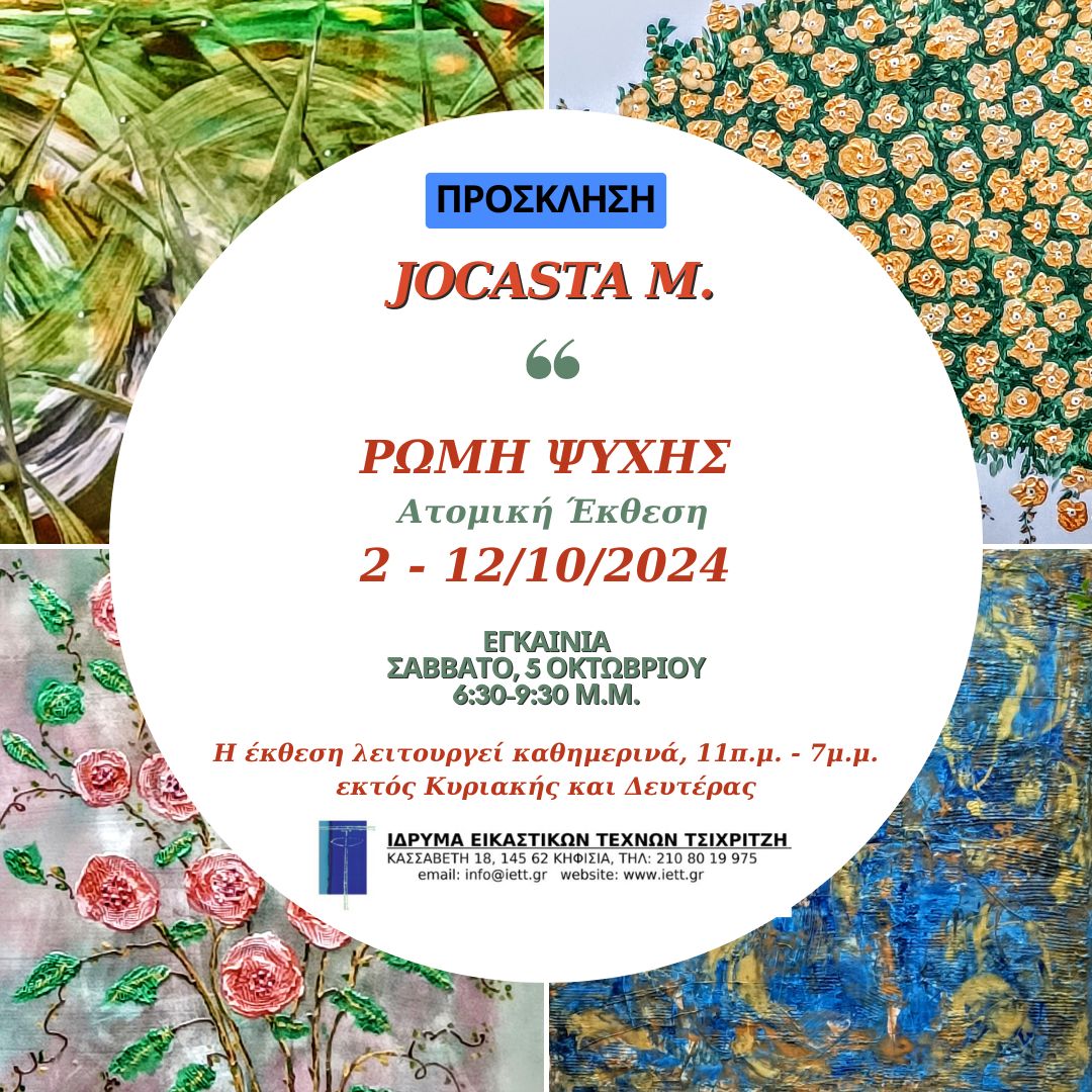 ΕΙΚΑΣΤΙΚΑ | JOCASTA M. - ΡΩΜΗ ΨΥΧΗΣ - Ατομική έκθεση ζωγραφικής στο Ίδρυμα Εικαστικών Τεχνών Τσιχριτζή - 2 - 12 Οκτωβρίου 2024