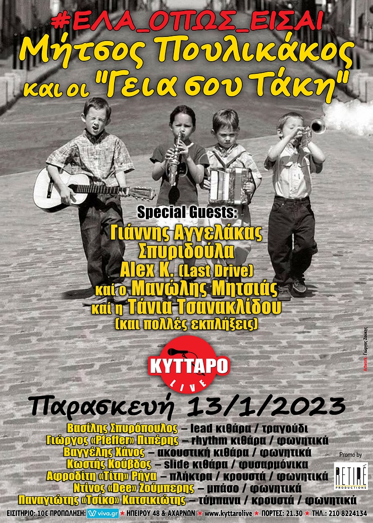 Ο Μήτσος Πουλικάκος και οι "Γεια σου Τάκη", στο Κύτταρο LIve Stage, την Παρασκευή 13 Ιανουαρίου