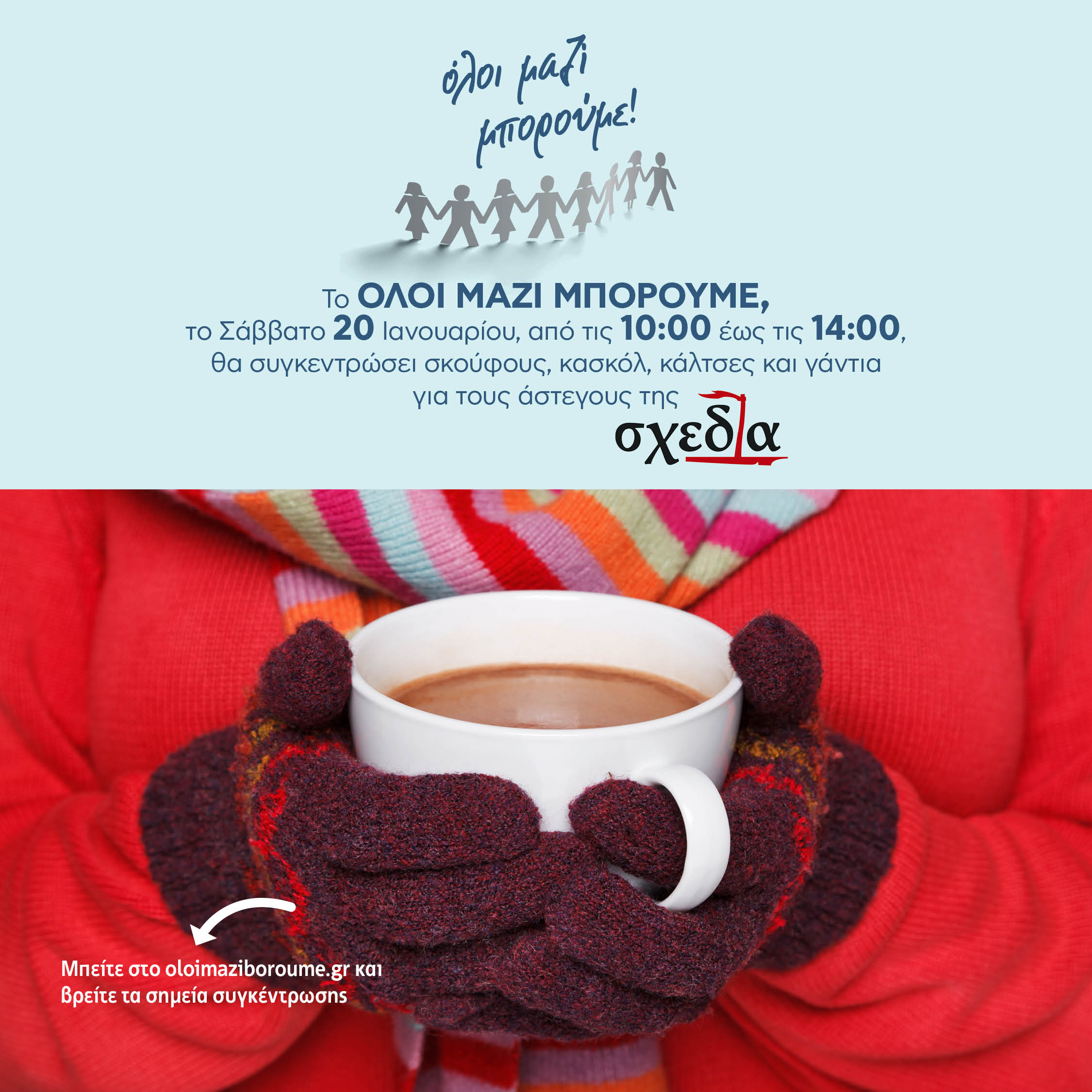 To «Όλοι Μαζί Μπορούμε» συγκεντρώνει σκούφους, κασκόλ, γάντια & κάλτσες για τους αστέγους της «Σχεδίας»