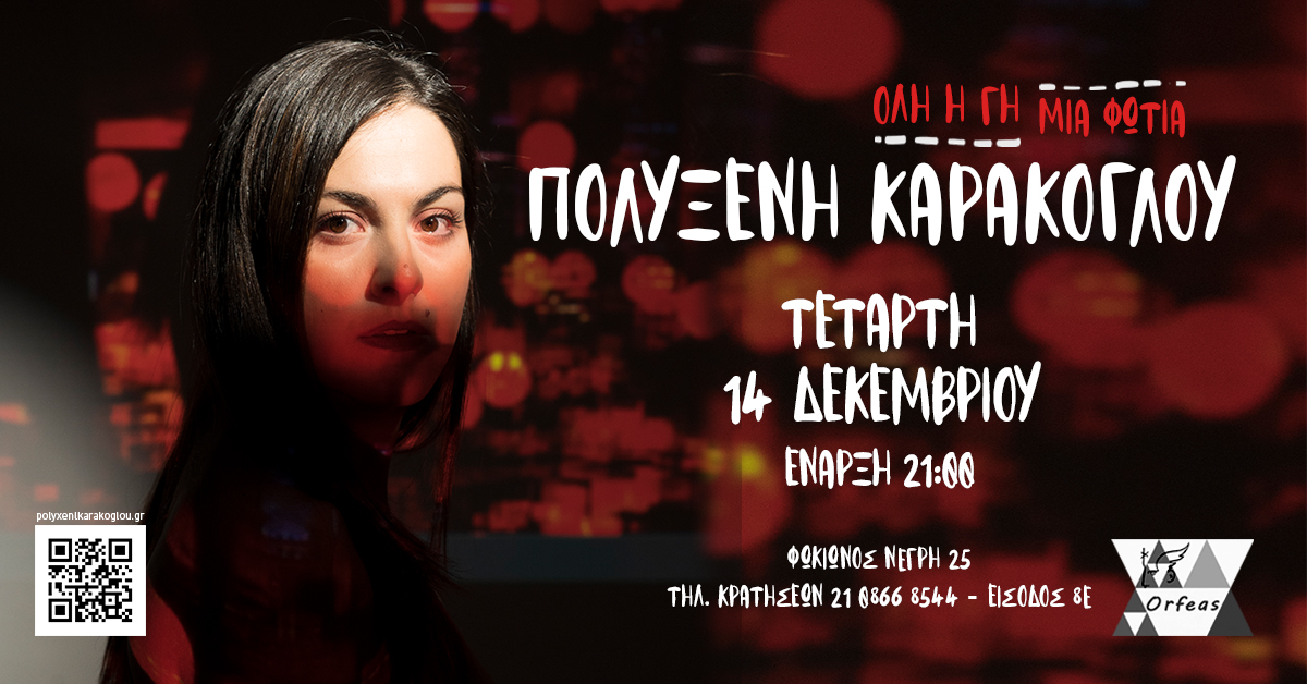 «Όλη η γη μια φωτιά»: Η Πολυξένη Καράκογλου στον Ορφέα στην Κυψέλη - Τετάρτη 14 Δεκεμβρίου