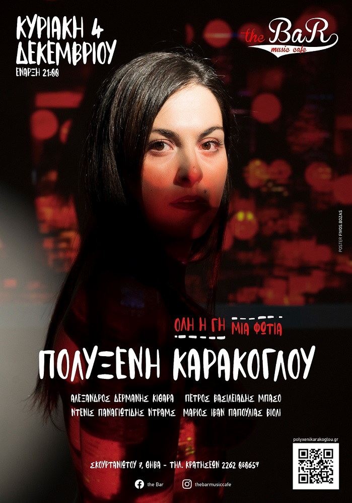 Η Πολυξένη Καράκογλου στο «the BaR», στη Θήβα - Κυριακή 4 Δεκεμβρίου