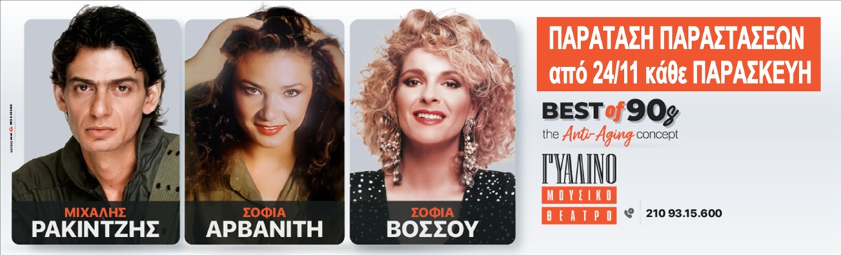 Μιχάλης Ρακιντζής - Σοφία Αρβανίτη - Σοφία Βόσσου, στο απόλυτο 90’s Βest Οf (anti-aging music) party! - Νέες παραστάσεις από Παρασκευή 24 Νοεμβρίου στο Γυάλινο Μουσικό Θέατρο