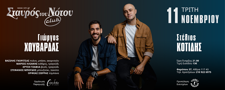 Ο Στέλιος Κοτίδης και ο Γιώργος Χουβαρδάς την Τρίτη 11 Νοεμβρίου στο Σταυρός του Νότου Club
