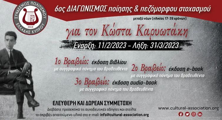 6ος Διαγωνισμός Ποίησης "Για τον Κώστα Καρυωτάκη" με έπαθλα 3 εκδόσεις