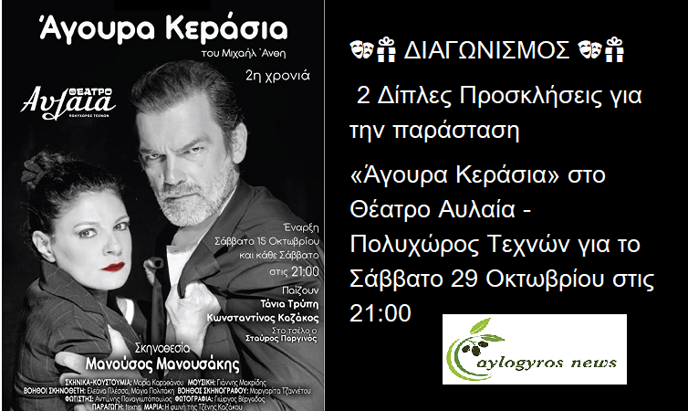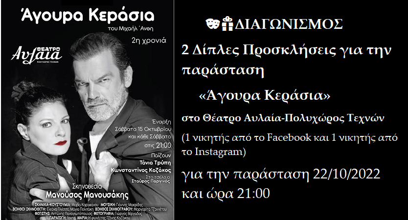 ?? ΝΕΟΣ ΔΙΑΓΩΝΙΣΜΟΣ: 2 Δίπλες Προσκλήσεις για την παράσταση «Άγουρα Κεράσια» στο Θέατρο Αυλαία - Πολυχώρος Τεχνών