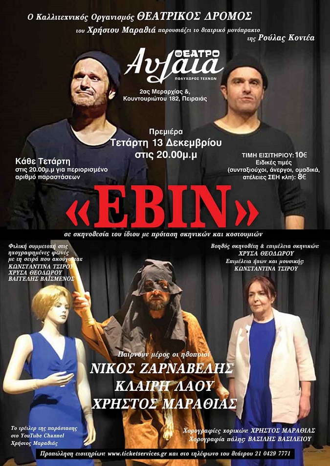 «Εβίν»: Θεατρικό μονόπρακτο της Ρούλας Κοντέα, σε σκηνοθεσία Χρήστου Μαραθιά