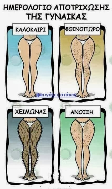 Ημερολόγιο αποτρίχωσης γυναίκας... (foto) Aylogyros News Η παλιά μας αυλή 04 Μαρτίου 2014 Όσο και αν μερικοί συνεχίζουν να τις θεωρούν αφελείς και απρογραμμάτιστες, αυτές προσπαθούν και με το παραπάνω να μας αποδείξουν το αντίθετο με τις πράξεις τους ...(i-diadromi) Προηγούμενο Επόμενο