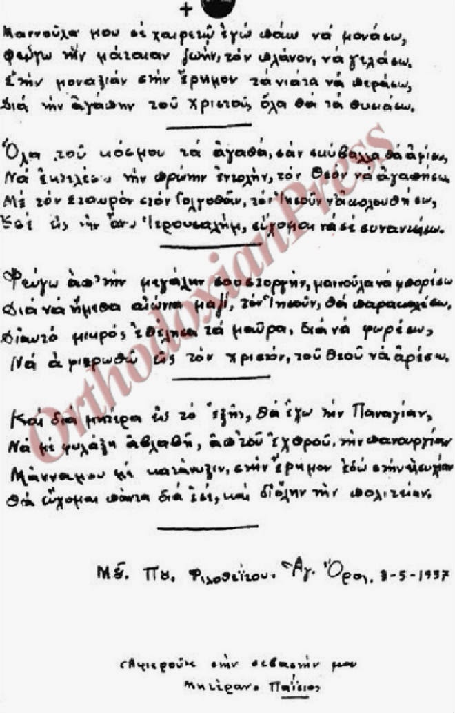 Σε ηλικία είκοσι έξι (26) χρονών ὁ τότε Αρσένιος Ἐζνεπίδης (το κατά κόσμων όνομα του Γέροντα Παϊσίου) εγκαταλείπει την κοσμική ζωή και καταφεύγει στο Άγιο Όρος να βρει την επαφή που έψαχνε από μικρός...