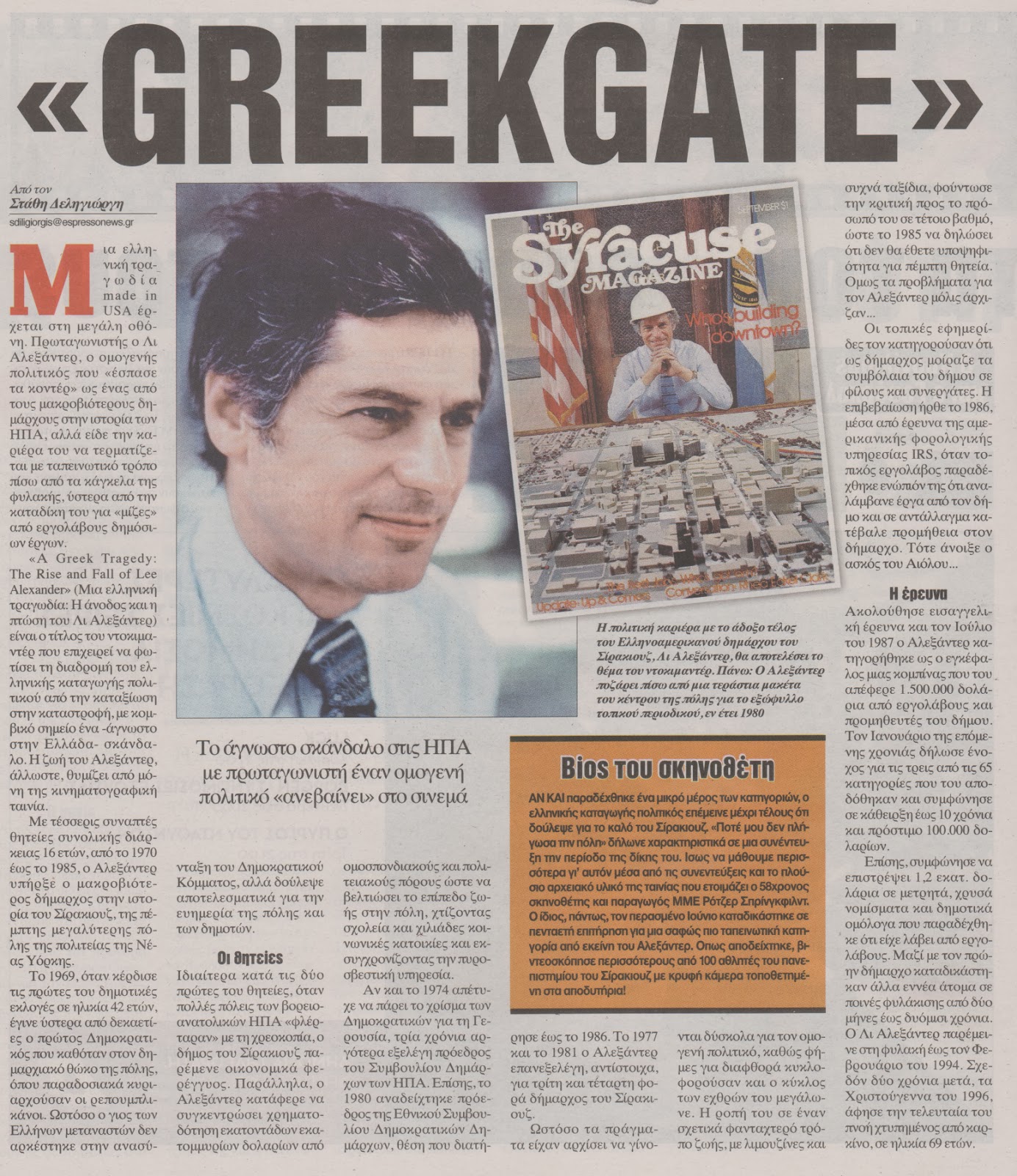 Μια ελληνική τραγωδία made in USA έρχεται στη μεγάλη οθόνη. Πρωταγωνιστής ο Λι Αλεξάντερ, ο ομογενής πολιτικός που "έσπασε τα κοντέρ" ως ένας από τους μακροβιότερους δημάρχους στην ιστορία των ΗΠΑ, αλλά είδε την καριέρα του να τερματίζεται με ταπεινωτικό τρόπο πίσω από...