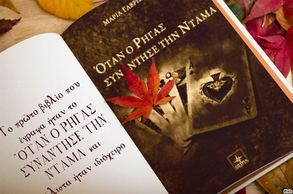Το πρώτο βιβλίο που έγραψα ήταν το "ΟΤΑΝ Ο ΡΗΓΑΣ ΣΥΝΑΝΤΗΣΕ ΤΗΝ ΝΤΑΜΑ και μάλιστα ήταν ιδιόχειρο. Θυμάμαι είχα αγοράσει ένα μεγάλο τετράδιο διακοσίων σελίδων και έγραφα ασταμάτητα χρησιμοποιώντας ογδόντα στυλό μέχρι να βάλω το πολυπόθητο τέλος. Ακόμα γελάω με το εγχείρημα αυτό και την άρνηση μου να δουλέψω σε υπολογιστή.