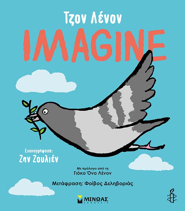 Κυκλοφορεί στις 17/9 από τις εκδόσεις Μίνωας ένα βιβλίο-σταθμός: το θρυλικό τραγούδι του Τζον Λένον για πρώτη φορά σε εικονογραφημένη έκδοση, μεταφρασμένο στα ελληνικά από τον ταλαντούχο Φοίβο Δεληβοριά. Με πρόλογο της Γιόκο Όνο Λένον και με τη συνεργασία της Διεθνούς Αμνηστίας, αυτό το βιβλίο τολμάει να οραματιστεί έναν ειρηνικό κόσμο. Οι στίχοι του Τζον Λένον συνεχίζουν να μας εμπνέουν, να μας δίνουν ελπίδα και αποφασιστικότητα σήμερα, υπενθυμίζοντάς μας ότι ο κόσμος μας θα γίνει πραγματικά ένας μόνο όταν κάνουμε την ειρήνη πραγματικότητα. Θα το αγαπήσουν οι γονείς και θα το λατρέψουν τα παιδιά κάθε ηλικίας.