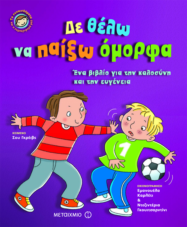 και η συμπεριφορά μας» της Σου Γκρέιβς , που κυκλοφορούν από τις εκδόσεις ΜΕΤΑΙΧΜΙΟ, βοηθούν τα παιδιά να μάθουν να ελέγχουν τον θυμό, να φέρονται στους γύρω τους με καλοσύνη και ευγένεια, ή να προσπαθούν για την επίτευξη των στόχων τους και να πιστεύουν στην αξία της ευγενούς άμιλλας.Το κάθε βιβλίο περιλαμβάνει οδηγό για τους ενήλικες, με ιδέες και προτάσεις για δραστηριότητες και συζήτηση με το παιδί.