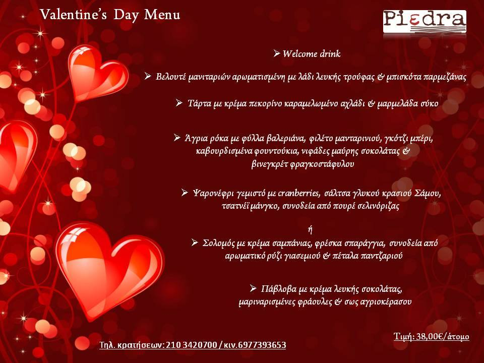 Δείτε το menu-piedra για την ημέρα του Αγίου Βαλεντίνου www.piedra.gr