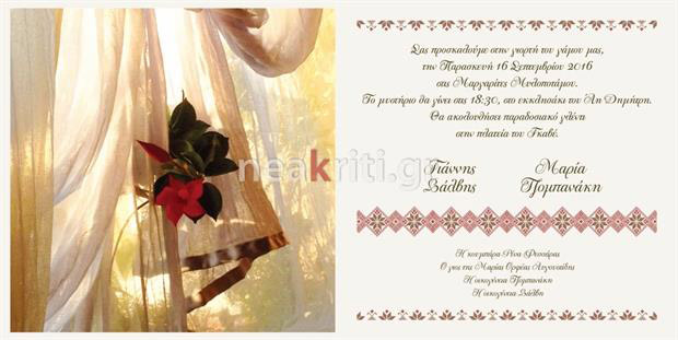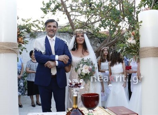 Δεκάδες Ανωγειανοί τη συνόδευαν μέχρι το γραφικό εκκλησάκι του Άγιου Δημήτρη στο χωριό ενώ κουμπάρα του ζευγαριού έγινε η Ρένα Φεσσάρα.