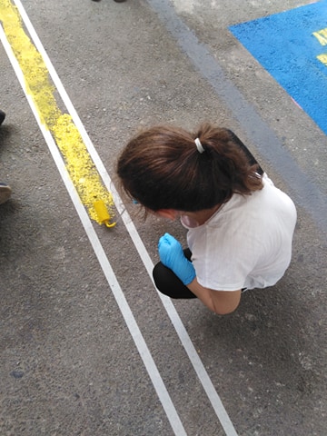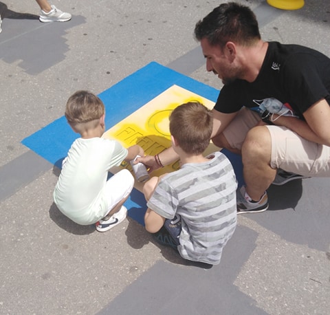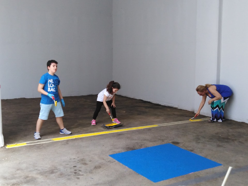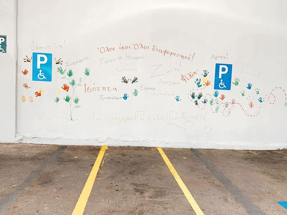 Ο Γενικός Διευθυντής του ΟΑΚΑ κ. Κωνσταντίνος Χαλιορής, φανερά συγκινημένος, με ένα σύντομο χαιρετισμό και λέγοντας δυο λόγια γι’ αυτή τη δράση, μας καλωσόρισε όλους και πρώτος αυτός στάθηκε μπροστά σε μια θέση στάθμευσης όπου τη χρωμάτισε, δίνοντας τη «σκυτάλη» στους συμμετέχοντες…