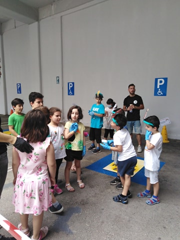 Η συνέχεια δόθηκε και στον επάνω χώρο στάθμευσης του κολυμβητηρίου του ΟΑΚΑ, έξω από Κέντρο σχεδιασμού αιφορικών δράσεων «Αεί Φέρειν», με τους μικρούς ευαισθητοποιημένους φίλους να δίνουν άλλο χρώμα σ’ αυτή τη δράση…