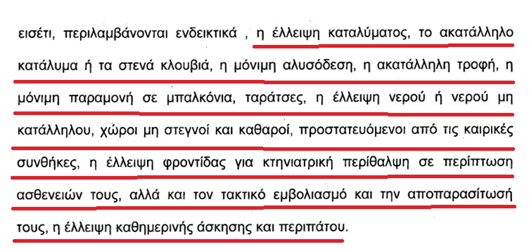 Σύμφωνα με το άρθρο 8, 1β του νόμου 4039/2012 απαγορεύεται η μόνιμη παραμονή των ζώων στα μπαλκόνια, βεράντες ή άλλους ανοιχτούς χώρους του διαμερίσματος. Επίσης σύμφωνα με τον ίδιο νόμο και την επεξηγηματική εγκύκλιο της Εισαγγελίας του Αρείου Πάγου, υπ’ αρ. 1/13/1631/8.4.13 η μη τήρηση των κανόνων ευζωίας του άρθρου 1 και 5 του ίδιου νόμου, συνιστούν το αδίκημα της παθητικής κακοποίησης ζώων.