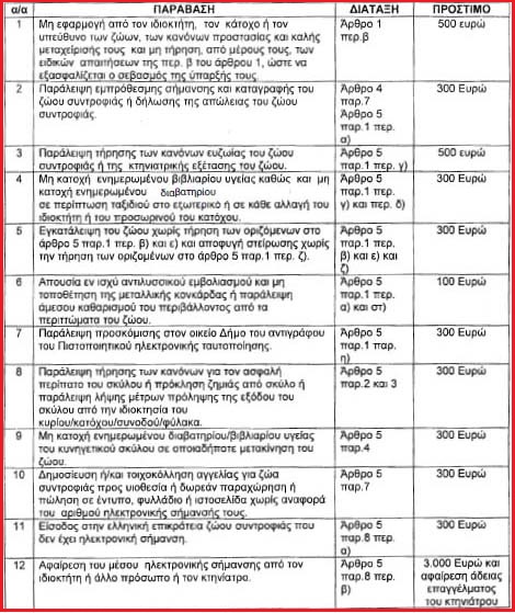 Η Αστυνομία, η οποία οφείλει να προσέλθει, αφού διαπιστώσει τις παραβάσεις του νόμου, πρέπει να κόψει τα σχετικά διοικητικά πρόστιμα, που ορίζονται για την κάθε περίπτωση στον άρθρο 46 του νόμου 4235/2014 που εξηγεί τις τροποποιήσεις του 4039/2012 (ο οποίος αναφέρει επικαιροποιημένα τα διοικητικά πρόστιμα της παθητικής κακοποίησης).