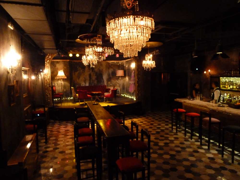 Το μπαρ εντυπωσιακό με καθρέπτες και καπιτονέ επενδύσεις, ενώ παντού ακούγεται μουσική ρετρό τζαζ, αυτή που μας κρατούσε κι εμάς συντροφιά… μέχρι εκείνος να ετοιμαστεί και να καθίσει μαζί μας…