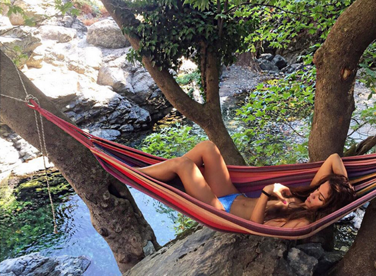 «Εδώ μένω εγώ» και «εδώ είναι το σπίτι μου» έγραψε η Μαίρη στο Instagram, όπου «ανέβασε» φωτογραφίες στις οποίες φαίνεται να απολαμβάνει το νερό και να χαλαρώνει σε μια αιώρα, δίχως το πάνω μέρος του μαγιό της!