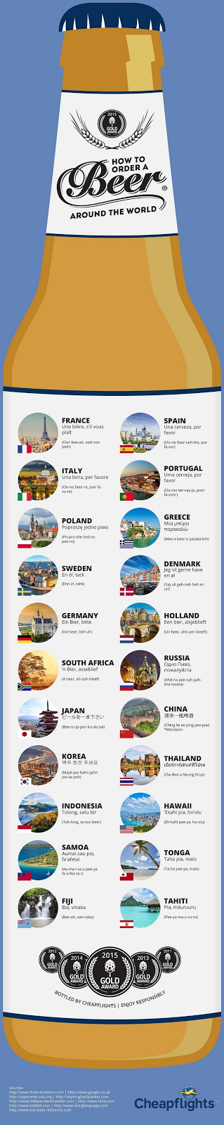 Η Cheapflights δημιούργησε ένα infographic που θα βοηθήσει τους λάτρεις της μπύρας να την παραγγείλουν σε 22 διαφορετικές χώρες σε όλο τον κόσμο… (7imeres)