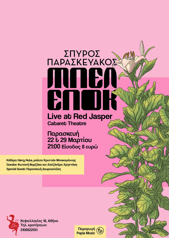 Ο Σπύρος Παρασκευάκος μας προσκαλεί τις Παρασκευές 22 και 29 Μαρτίου στο Red Jasper στην Κυψέλη, να γνωρίσουμε τον καινούργιο του κόσμο με μια μουσική παράσταση με τίτλο «ΜΠΕΛ ΕΠΟΚ», βασισμένη στο νέο του δίσκο.
